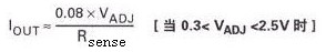 調(diào)節(jié)針可通過外置的直流電壓(VADJ)進(jìn)行過驅(qū)動,以獲得超過內(nèi)置的電壓基準(zhǔn),并調(diào)整輸出電流使其超出或低于額定值。此時(shí)的額定輸出電流為: